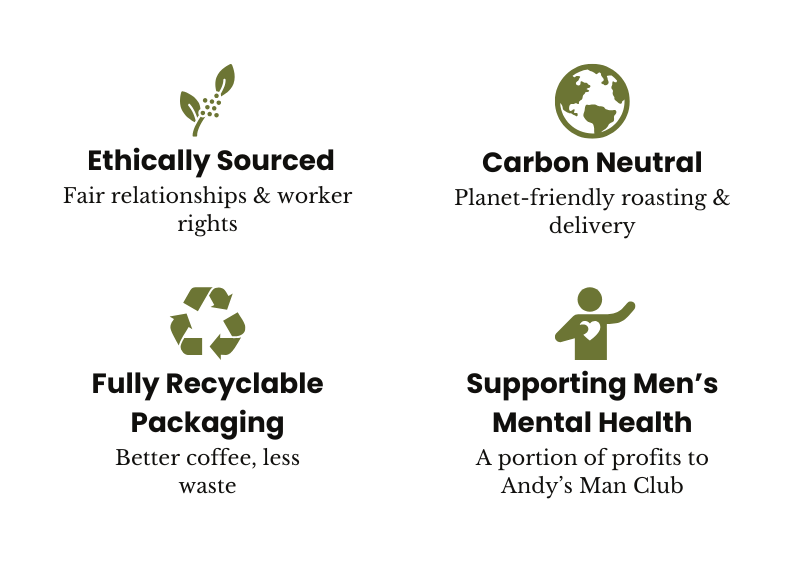 We proudly donate a percentage of every sale to Andy’s Man Club, helping fund free peer-to-peer support groups for men across the UK.